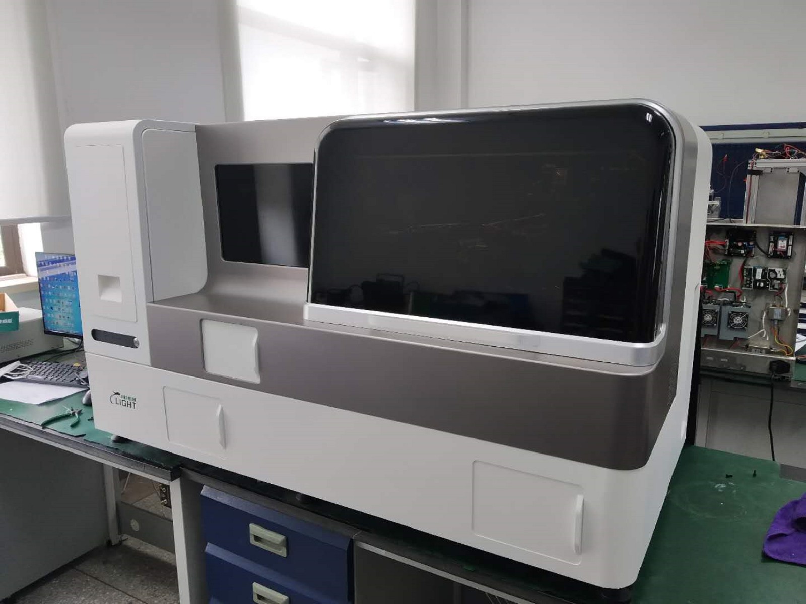 液相芯片免疫分析技術是一種以懸浮于液體中的熒光編碼微球為反應載體,以流式分析技術為檢測手段,利用微量樣本實現多種生物分子同時檢出的新型免疫分析技術。與傳統檢測技術相比,液相芯片技術在通量及并行檢測程度方面優勢明顯,同時具有較高的檢測靈敏度及動態范圍,以及耗樣量少、特異性強、重復性好等優點。本系統所用的固相反應載體為直徑 6μm 的聚苯乙烯微球,反應面積大,可包被的探針分子多,能與樣本中的目標分子充分結合,且反應在液相中進行,反應物質活性高,能大大增強檢測靈敏度。適用于癌癥指標篩查,以胃癌指標的定性、定量分析為主的應用場景。